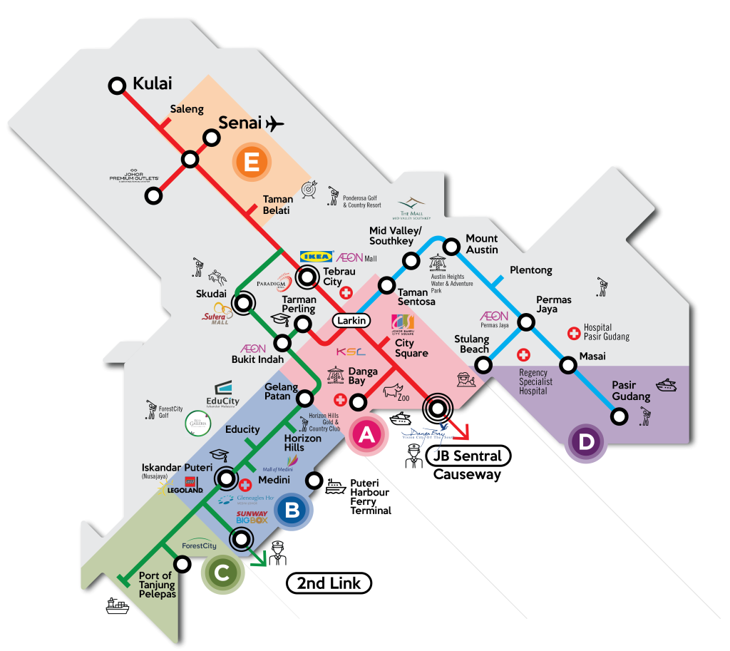 Taking your own private vehicle or a private taxi to JB is one of the most flexible modes of transportation, because you can choose your own route and travel time. However, while both are more convenient than other modes of transportation, they are also more expensive, either due to fuel costs or service fees. Depending on the route, travel time could range from 30 minutes to an hour.